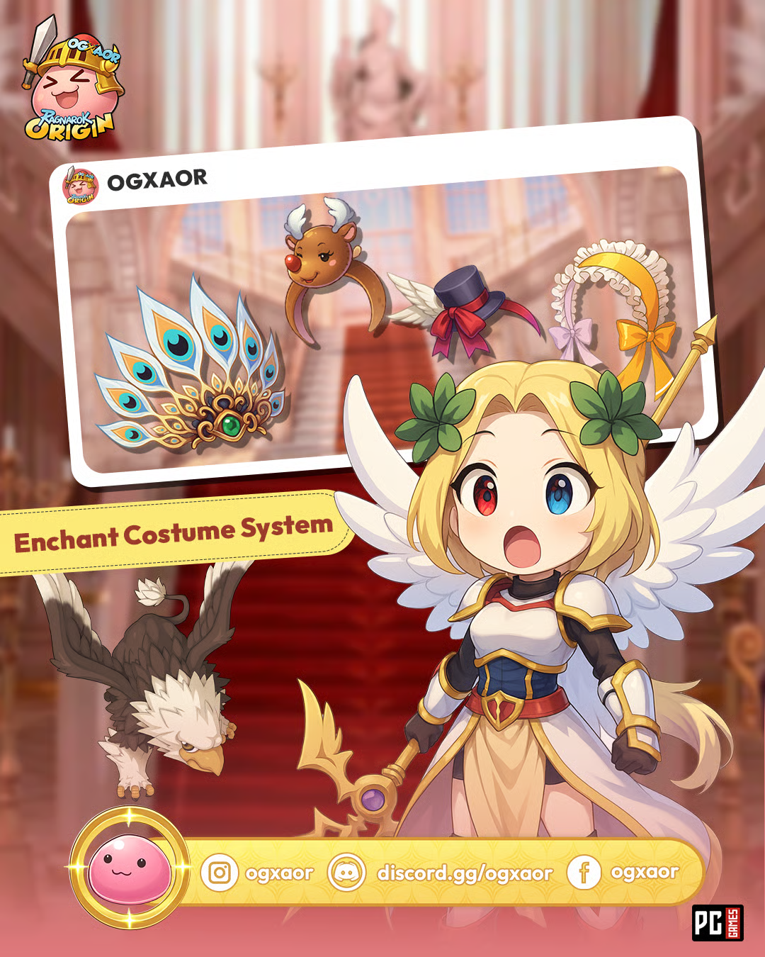 You can exchange any costume acquired from the <mark style="color:yellow;">**Gachapon Costume Machine**</mark> for an [<mark style="color:$primary;">**Enchant Stone Box**</mark>](https://aorxog.gitbook.io/wiki/rog-special-feature/mall-room/central-area/hall-of-costume/costume-gachapon/costume-and-enchant-season-1). <mark style="color:red;background-color:$warning;">**Be cautious when exchanging costumes—equipped costumes can be destroyed**</mark>. Place any costumes you want to keep in Kafra Storage beforehand.